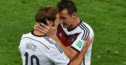 通算得点記録を更新したベテラン選手のクローゼが若干22歳の若手ゲッツェと交代して、